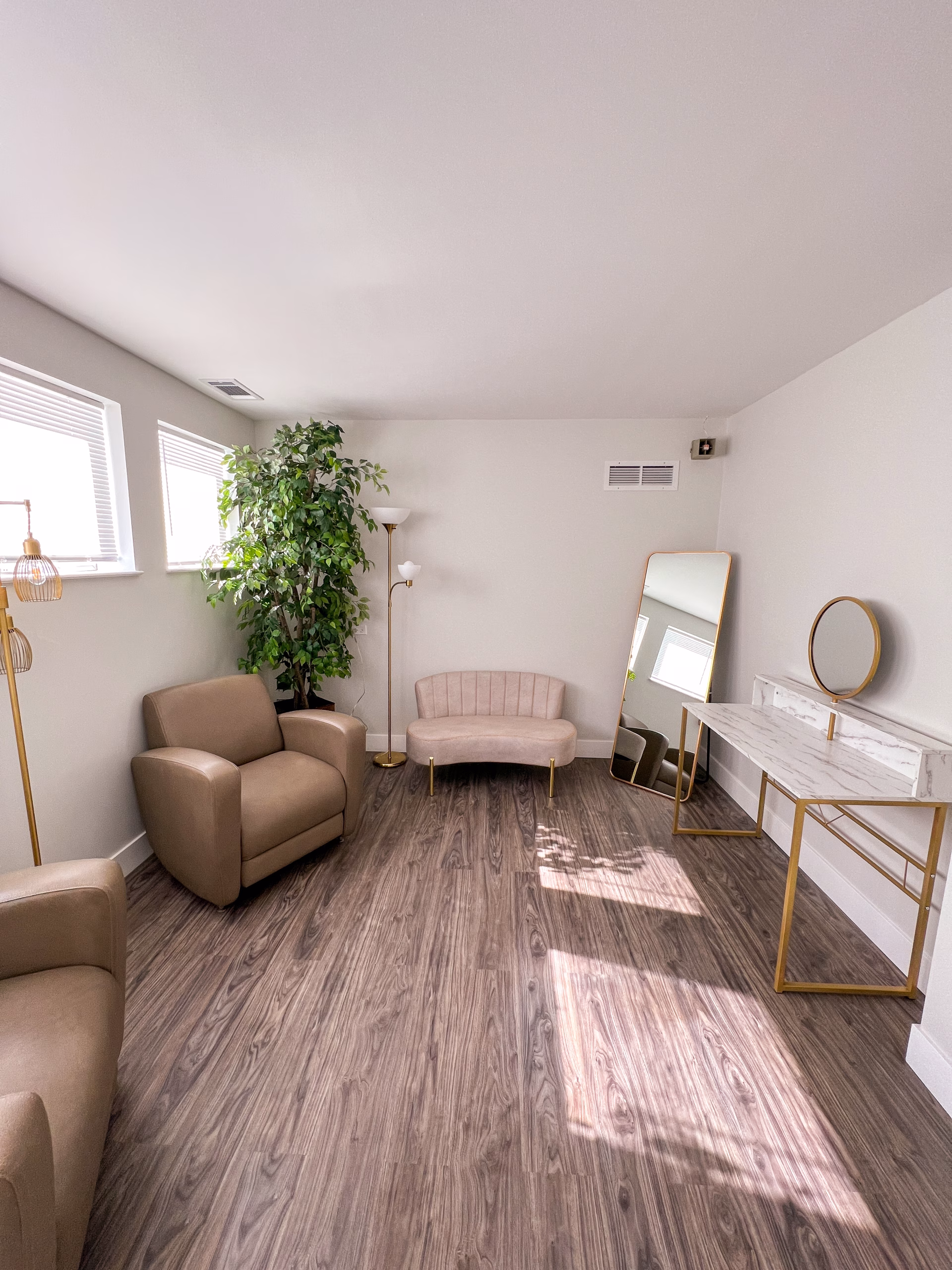 A cozy, light-filled suite tucked away for private, quiet moments. The space features a common room, kitchen/dining area, private room and full bathroom. Included with this room:Gathering Suite (Bridal Suite)